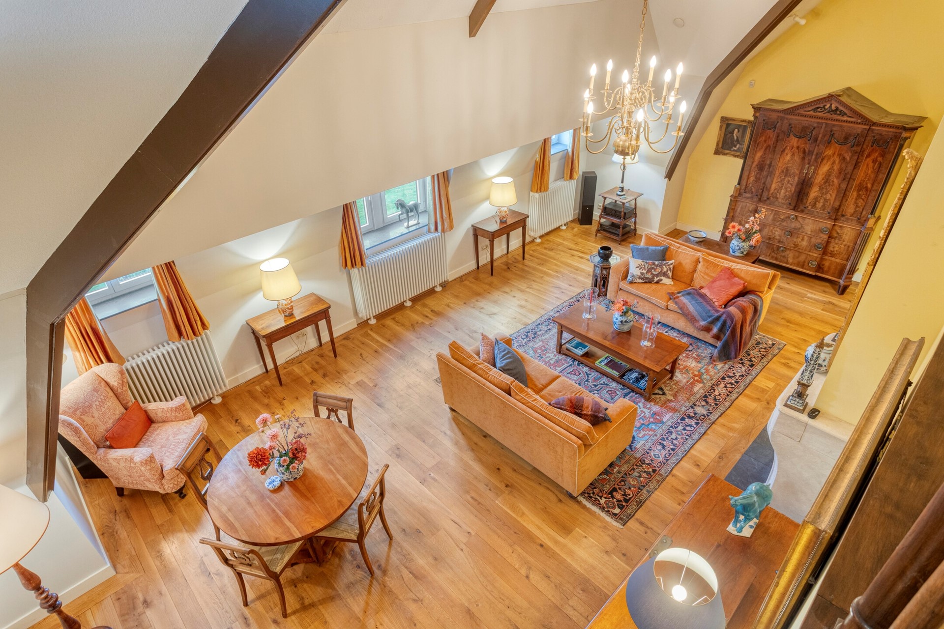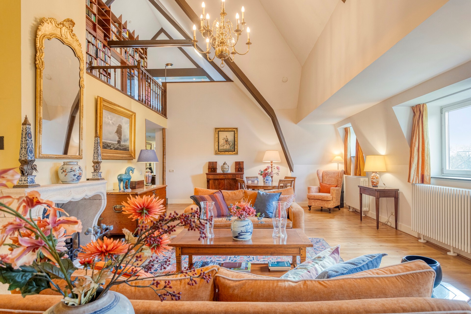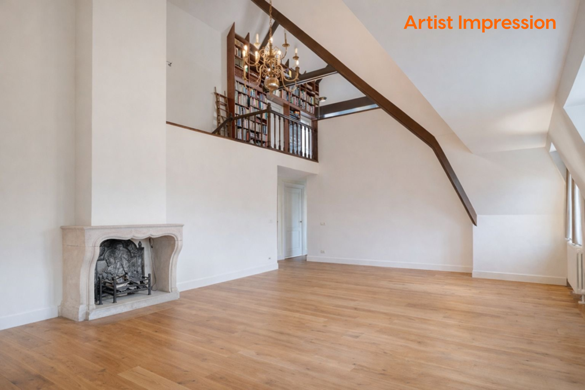 In dit unieke decor bevindt zich een uitzonderlijk maisonnette-penthouse. Hier gaan monumentale allure en hedendaags comfort hand in hand: een royale woonkamer met een waanzinnige ruimte beleving door het hoge plafond en de open tweede verdieping (vide) en open haard als kloppend hart, de huidige bibliotheek die uitnodigt tot studie en rust, het zonnige inpandige balkon dat elk seizoen omarmt, en slaapkamers met sfeervolle lichtinval door de dakkapellen. Alles ademt een ingetogen klasse die zich niet opdringt, maar voelbaar aanwezig is.