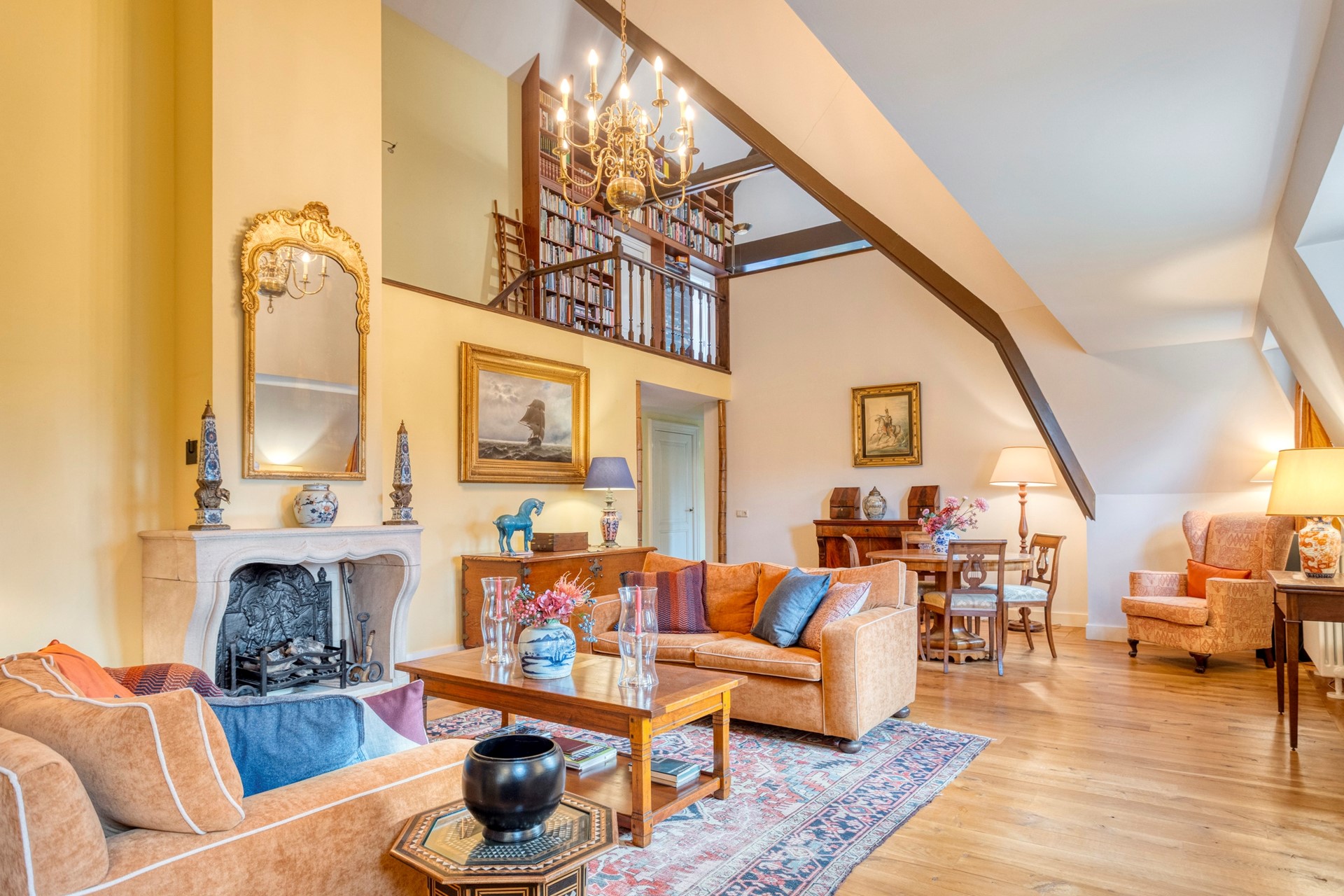 • Royale, sfeervolle woonkamer met vide en een stijlvolle schouw met gashaard