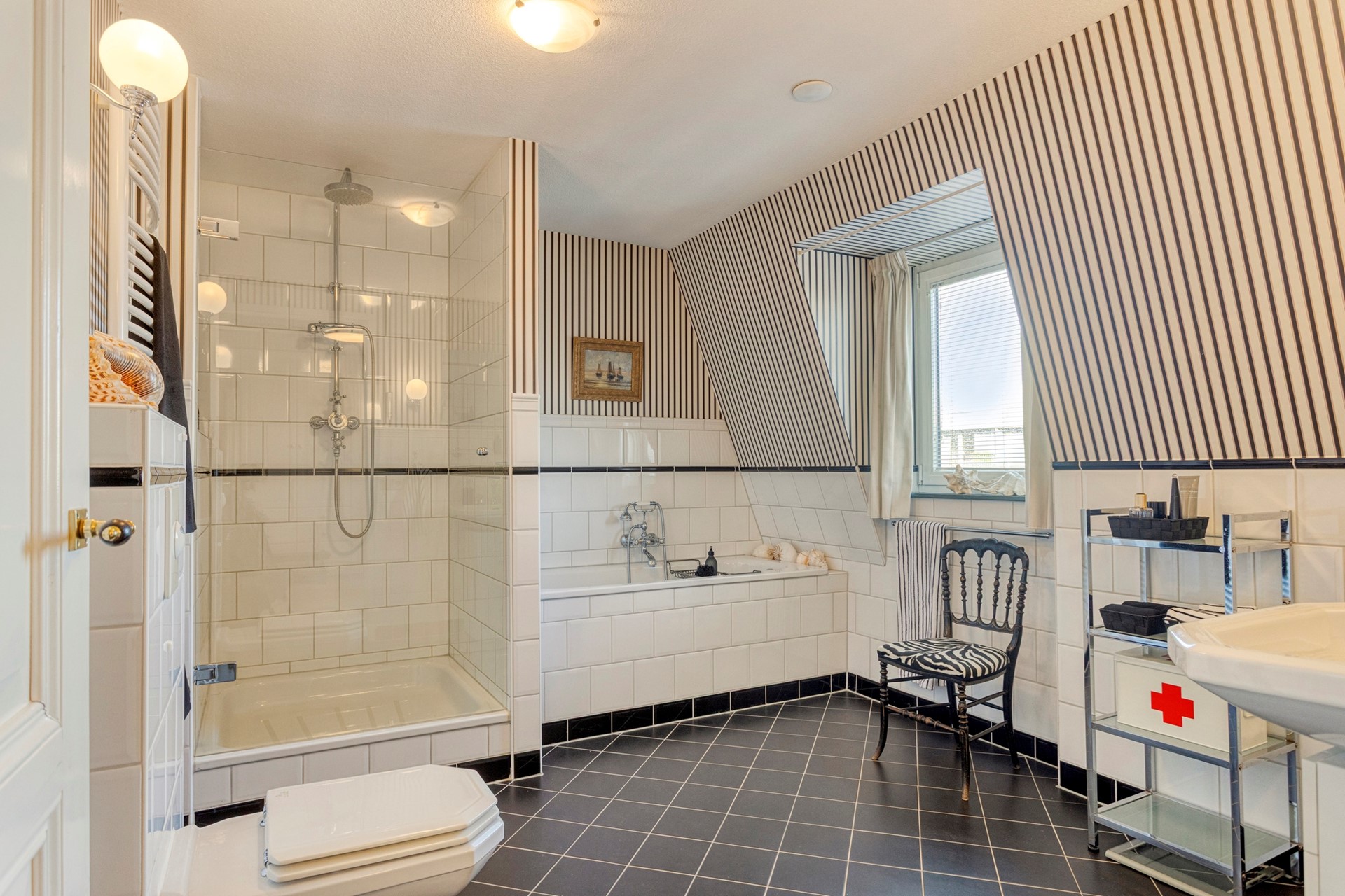 • Badkamer met modern sanitair, inclusief ligbad, douche en toilet.