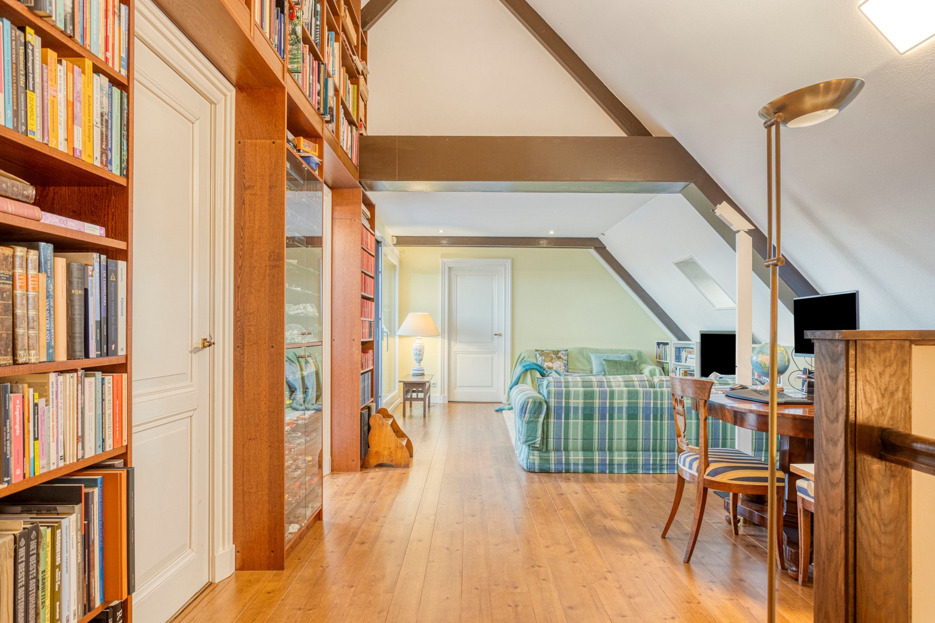 • Grote bibliotheek en extra living, een ruimte die rust en concentratie ademt.